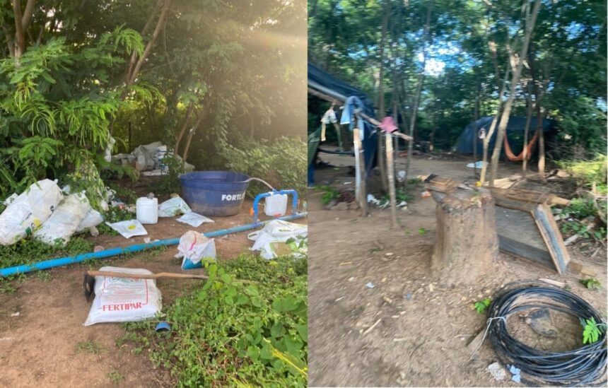 No local, foi encontrado um acampamento utilizado por cerca de oito suspeitos, os quais perceberam a aproximação dos policiais e fugiram, abandonando um acampamento altamente equipado para o monitoramento da plantação. Moradores disseram aos policiais que os suspeitos fugiram antes da chegada das autoridades.