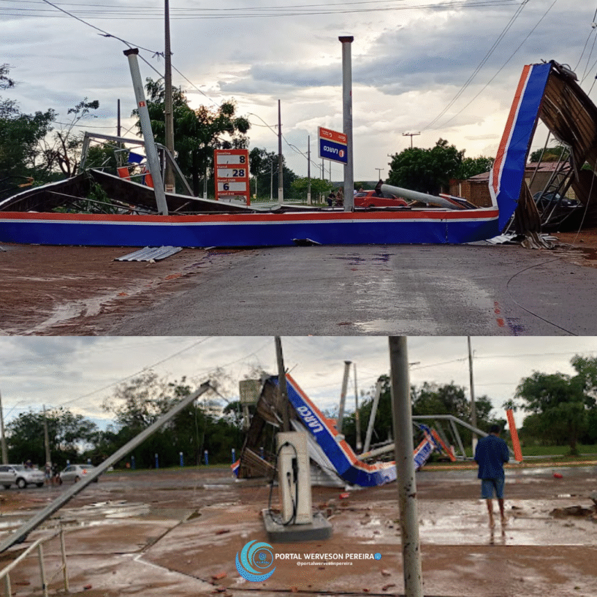 Entre os principais estragos registrados estão casas destelhadas, árvores derrubadas, outdoors arrancados e a queda de fios de alta tensão, o que levou ao alerta para que a população evitasse circular próximo a áreas com fiação energizada. Um posto de combustível localizado na entrada da cidade teve a cobertura completamente destruída pela força dos ventos.