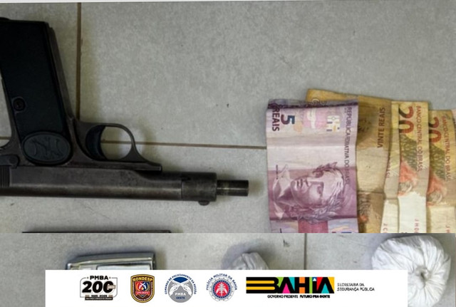 Na busca pessoal, os agentes encontraram uma pistola FN Browning calibre 7,65mm carregada, pronta para uso. O indivíduo foi identificado como Jeferson Bulhões da Silva, que confessou não possuir porte nem registro da arma. No local onde ele havia sido visto inicialmente, os policiais também localizaram dois invólucros com substância semelhante à cocaína.
