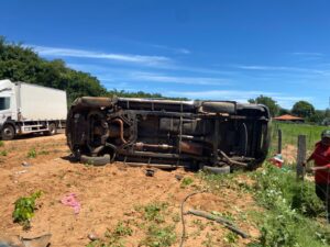 Na manhã desta sexta-feira (16), um veículo capotou na BR-135, nas proximidades da entrada para o Conjunto Penal, no município de Barreiras, no oeste da Bahia.