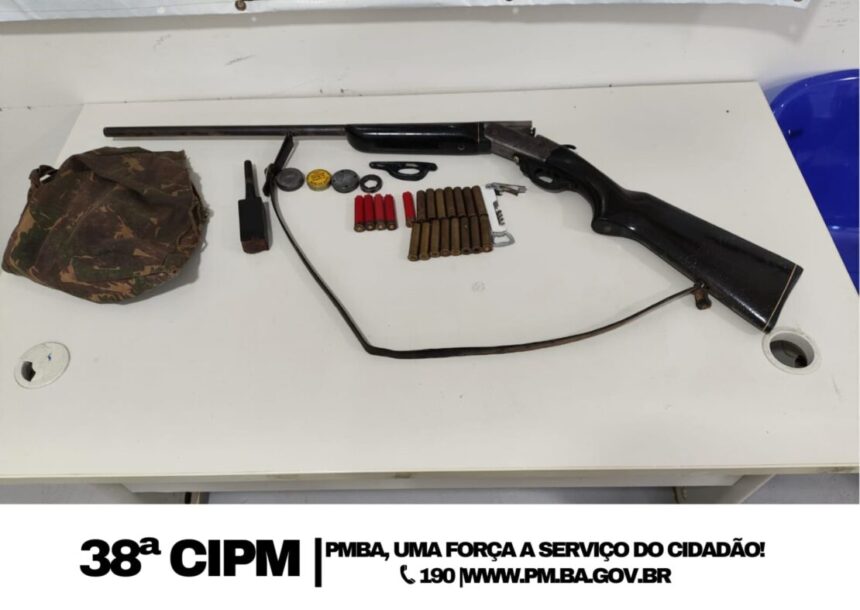 Com ele foram encontrados uma espingarda CBC PAT 83515 cal. 32 – nº: 192730 e 20 munições calibre 32, deflagradas. O homem e o material apreendido foram apresentados Delegacia de Bom Jesus da Lapa para que fossem tomadas as medidas cabíveis.