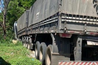 Uma carreta desceu desgovernada e entrou numa área de mata às margens…