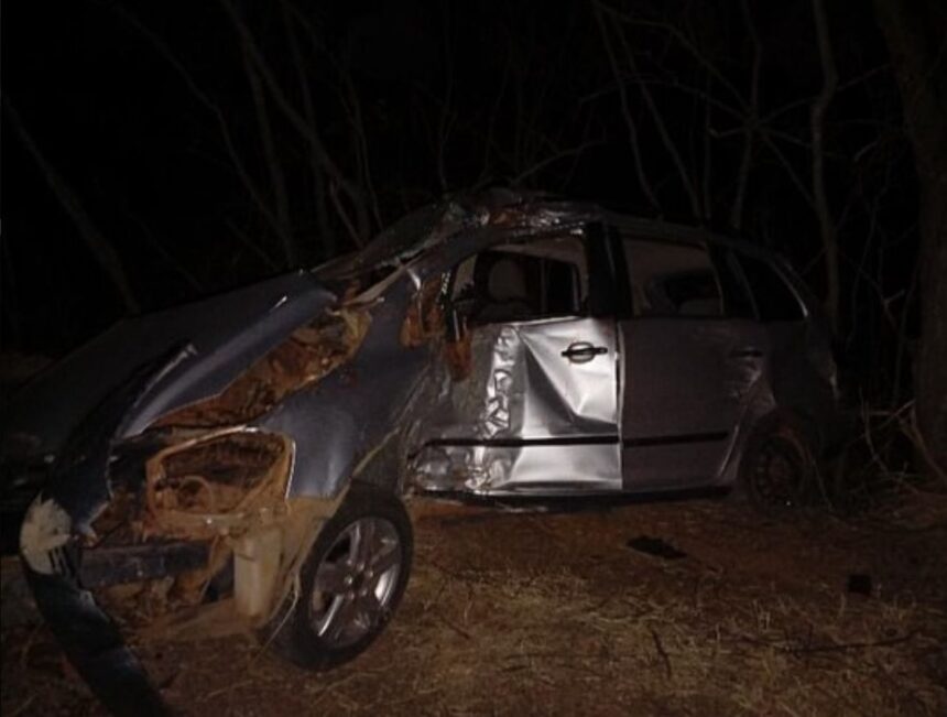 Na madrugada desta sexta-feira (10), um carro ficou completamente destruído após rodar na pista e colidir contra uma árvore, na BR-242, próximo à entrada de Muquém do São Francisco.