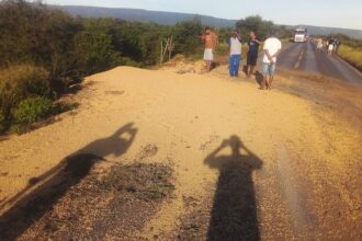 Na manhã deste domingo (9), um compartimento de carreta tombou na BR-242,…