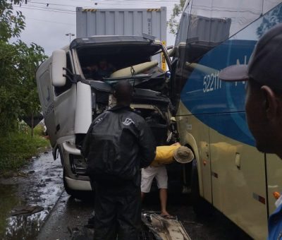 Leitura: Ônibus que seguia para Guanambi colide contra carreta na BR-415 entre Ilhéus e Itabuna.