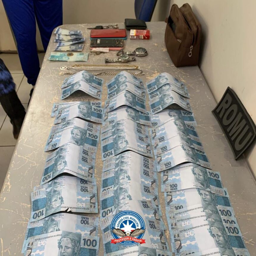 Entre os abordados, um utilizava tornozeleira eletrônica no momento da ação. Também foram apreendidos cinco celulares, dois relógios, quatro correntes, uma carteira com documentos pessoais e o veículo usado pelo grupo.