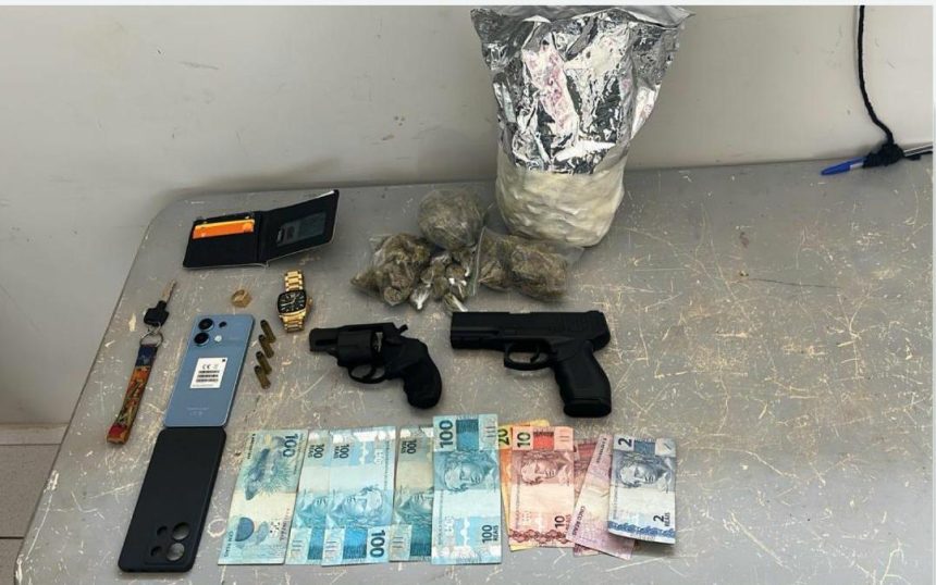 A equipe policial realizou abordagem ao homem e busca perimetral, na qual foram encontrados arma, droga e simulacro de arma de fogo. Diante dos fatos o abordado e todo material foram conduzidos e apresentados na Delegacia de Luis Eduardo Magalhães.