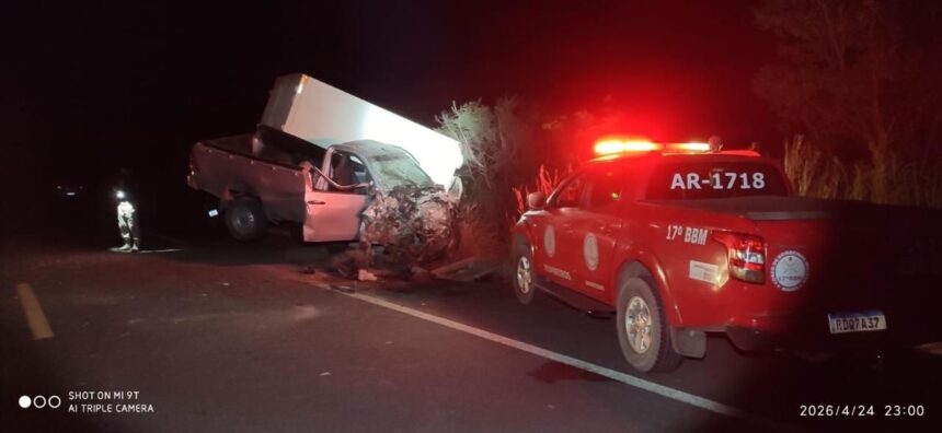 Segundo as informações iniciais, a ocorrência envolveu uma colisão entre um caminhão baú Ford F-4100 e uma picape Toyota Hilux, ambos transportando dois ocupantes cada.