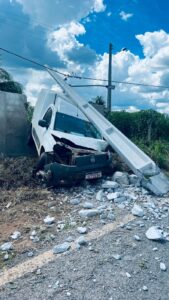 De acordo com informações preliminares, o condutor de um veículo modelo Fiat perdeu o controle da direção, colidiu contra um poste de energia elétrica e, em seguida, acabou atingindo a parede de uma residência às margens da rodovia.